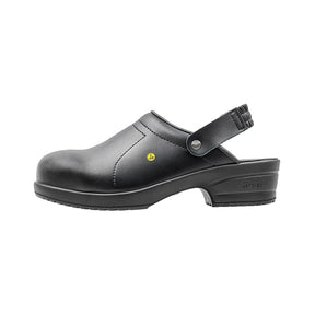 Treskolignende, klassisk og allsidig ESD-modell. Overdelen er i slitesterkt svart PU-skinn. Vendbar hælrem med elastisk hældel som forbedrer passformen. Polyuretansåle med godt grep som er bestandig mot olje og flere kjemikalier.