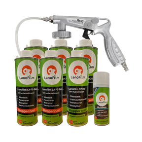 Et komplett «gjør-det-selv»-sett med alt du trenger for å understellsbehandle bilen din. 1 ltr flaskene kan etterfylles!