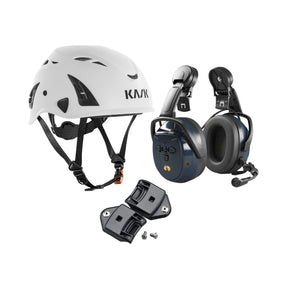 Komplett hjelmpakke med Kask superplasma vernehjelm, øreklokkeadapter og valgfritt elektronisk hørselvern med Bluetooth.