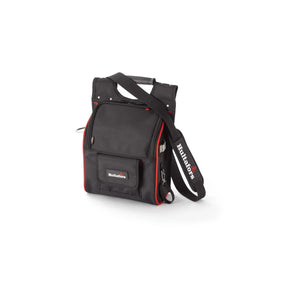 En ergonomisk verktøylomme for elektrikere og teknikere. Den er formet som en liten bæreveske - designet for å brukes mens du jobber, og holder verktøyene dine innenfor rekkevidde. Vesken er laget av ekstremt slitesterk ballistisk polyester - 1680 denier - for maksimal slitestyrke og levetid. Baksiden er svakt buet og polstret for optimal passform. Løkker på baksiden lar deg også feste den direkte til beltet slik at du kan bruke den på hoften (passer belter med en bredde på opptil 60 mm). Lokket med glidelås holder utstyret trygt når det ikke er i bruk, og lokket brettes bort på utsiden, noe som gjør det enkelt å holde lommen åpen for enkel tilgang til verktøyene. Den har ett hovedrom med flere lommer for å hjelpe deg med å organisere elektrikerverktøy og testutstyr. Vekslende rødt og svart stoff gjør det lettere å skille forskjellige verktøy og lommer fra hverandre. Det er lommer med lokk og glidelåser for sikker oppbevaring av sensitivt utstyr. Den har også en utvendig målebåndholder, stropp for elektrotape, en hammerholder, pennholdere, en nøkkelringholder, løkker for mindre verktøy som skrutrekkere og en liten løkke for å feste en karabinkrok. Den justerbare skulderstroppen er polstret og har en sklisikker overflate som gjør den komfortabel og enkel å bære. Den er avtakbar, med karabinkroker i metall for maksimal holdbarhet. På toppen finner du også et komfortabelt gummihåndtak. Glidelåsene er av nylon – veldig slitesterke med store grep i metall som er lette å gripe, s...