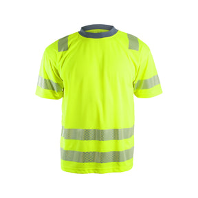 Pro-Dry behandlet unisex t-shirt. Pustende og fukttransporterende stoff gjør den perfekt til aktivitet. Ekstra refleksfelt på skuldre og rundt ermer. Kontrastafarget rib på hals, mansjetter og linning.