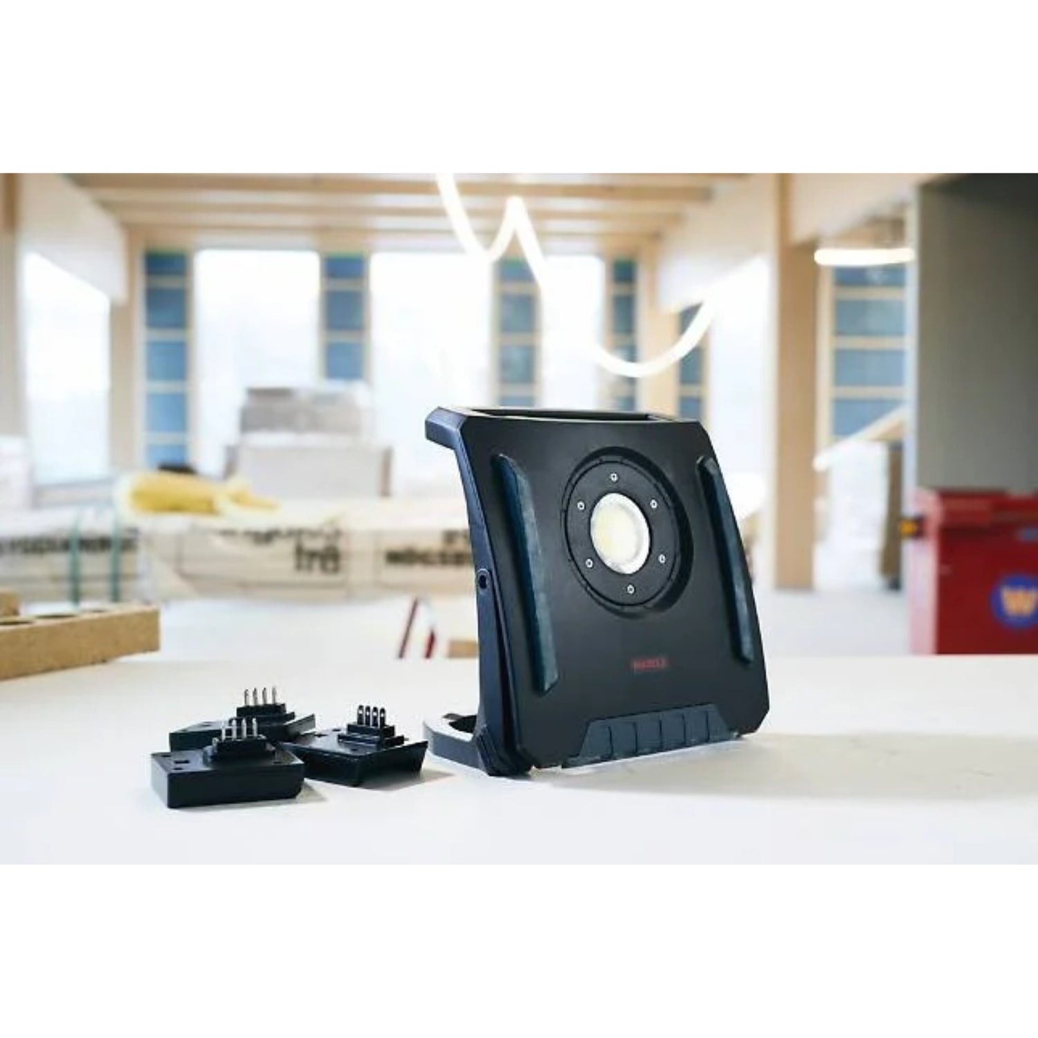 Oppladbar arbeidslampe med robust konstruksjon. Støtsikker og lett å ta med seg. Klargjort for bruk av elektrohåndverktøybatterier ved at man setter på et adapter i lampen, som man så fester elektrohåndverktøybatteriet i (finnes adapter for batterier til Dewalt, Milwaukee, Makita, Metabo og Bosch, 18 V - følger med i esken). Takket være dette er arbeidslampen meget allsidig. Bany 4000 RE er kompatibel med appen Mesh Lamp, der du kan tenne/slukke, regulere dimmer, stille inn timer og til og med parallellkoble opp til 100 enheter. Strømbryter og dimmer kan også reguleres manuelt. Dette er en hybridlampe, som betyr at den også kan forsynes med strøm med strømforsyningskabel. Den har også nødlysfunksjon som gir ekstra sikkerhet. Lampen har isolasjonsklasse IP 65, som betyr at den kan brukes både innendørs og utendørs. Med produktet medfølger også fire adaptere (Dewalt/Milwaukee, Bosch, Makita og Metabo). Lampen har beskyttelsessystem for batterier til batteridrevne verktøy. Med denne funksjonen forhindres utlading og overoppheting av batterier.