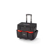 En stor og allsidig verktøy trillebag, perfekt for alle håndverkere som trenger å ha med et omfattende sett med verktøy til arbeidsstedet. Den er designet for å frakte elektroverktøy, håndverktøy, elektronikk og ting og tang – alt du trenger. Vesken er laget av ekstremt slitesterk ballistisk polyester - 1680 denier - for maksimal slitestyrke og levetid. Store hjul med spor og et teleskopisk aluminiumshåndtak gjør at du enkelt kan dra den over de fleste overflater. Trillebagen består av ett enkelt stort rom foret med lommer og verktøyholdere. Bunnen er kledd i et rødt stoff som gjør det lettere å se hva som er i den. Hovedrommet med glidelås har flatt lokk med dokumentlomme. Du kan stable ekstra utstyr på toppen av vesken, og det er en stropp for å feste lokket i åpen stilling. Vesken har også utvendige lommer, komfortabelt polstrede håndtak og et sett med stropper for å feste vater eller andre lange og smale verktøy. Glidelåsene er av nylon – veldig slitesterke med store grep i metall som er lette å gripe, selv med hansker på.