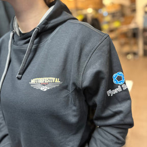Stilig hettegenser med Motorfestival Stryn merke.