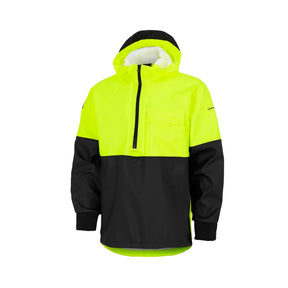 Lett regnanorakk i elastisk, myk og slitesterk PU. Sveisede sømmer som tåler høy slitasje. Regulerbar hette tilpasset hjelmbruk. Halvzip i front. Brystlomme. To sidelommer skjult bak klaff. Regulering i nedkant. Mansjetter i neopren.