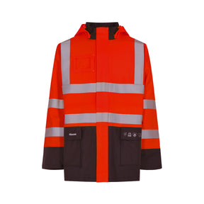 Denne hi-vis regnjakken kombinerer komfort, sikkerhet og slitestyrke, og er det perfekte valget for krevende arbeidsmiljøer.