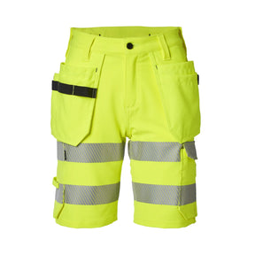Håndverksshorts i synlighet kl.1 for dame. Laget i en myk og komfortabel 4-veisstretch og med justerbar midje for optimal passform og komfort. Shortsen har praktiske håndverkslommer, en lukket benlomme og tommestokk lomme. Hovedmaterialet i polyester holder deg kjølig selv under de varmeste arbeidsdagene.