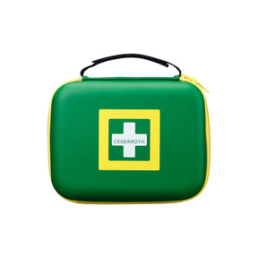 Cederroth førstehjelskit medium er en førstehjelpsveske i et slitesterkt gummilignende materiale med matt overflate for å holde støv, fukt og smuss ute. Utrustningen holdes hygienisk ren og er alltid klar til bruk. Produktene er pakket i transparente plastlommer for tydelig oversikt, og det er lett å finne riktig produkt når hvert sekund teller. Alle produkter er utstyrt med tydelige instruksjoner. Signalfarger i grønt og gult gjør vesken synlig på lang avstand. Praktisk håndtak med justerbart borrelåsbånd gjør det enkelt å feste vesken eller bære den med seg.