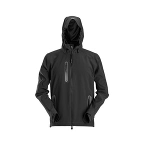 Snickers 1218 FlexiWorker en vanntett softshell-jakke med ermer som gir full bevegelse. Softshell-arbeidsjakken er designet for byggearbeid i kaldt og fuktig vær. Jakke med avtakbar hette og vanntette glidelåser.