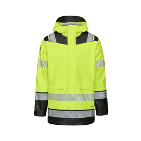 Regnjakke i ekstra slitesterk og fleksibel PU-kvalitet med hjelmkompatibel hette med flere justeringsmuligheter og forsterket skjermkant. Forseggjort passform for best bevegelseskomfort. To frontlommer, hvorav den ene har ID-kortlomme. Justerbare mansjetter. Segmenterte reflekser og Signal Lucence-tape for økt synlighet og sikkerhet når du oppholder deg i miljøer uten ekstern lyskilde.