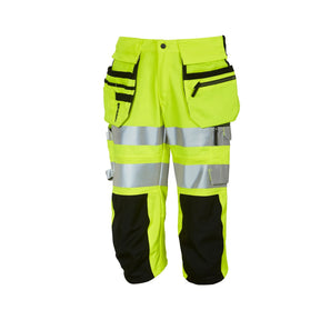 Piratbukse med hengelommer og blanding av slitesterk full 4-veis stretch og vanlig materiale. Flyttbare og avtagbare hengelommer, smart løsning for venstrehendte. Venstre hengelomme har ekstra sikkerhets- lomme med glidelåslukking. To sidelommer, to baklommer. ID-kortholder, mobil-telefonlomme med klaff. Tommestokklomme, knivknapp og pennelomme. Høyre lårlomme med glidelåslukking. Doble hammerholdere, samt borrelåshempe for feste av hammerholder. Knelommer tilpasset våre kneputer. Stretchreflekser.