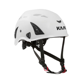 En lett og godt godt balansert hjelm produsert i polypropylen. Polystyren skumpolstring mellom hjelmskall og innredning. Rattjustert innredning. Innredningen er justerbar i høyden og sideveis. Hodestørrelse 51 - 63 cm. Mykt og hurtigtørkende 2DRY antibakterielt tekstilmateriale i innredning og svettebånd. Leveres med 4-punkts regulerbar hakestropp. Hakestroppen er monter til hjelmskallet og løser ut ved en belastning på mellom 15 og 25 kg. 10 luftinntak for optimal ventilasjon. Lufteventilene er utstyrt med finmasket netting. Lyktefeste som passer alle hodelykter med hodebånd.